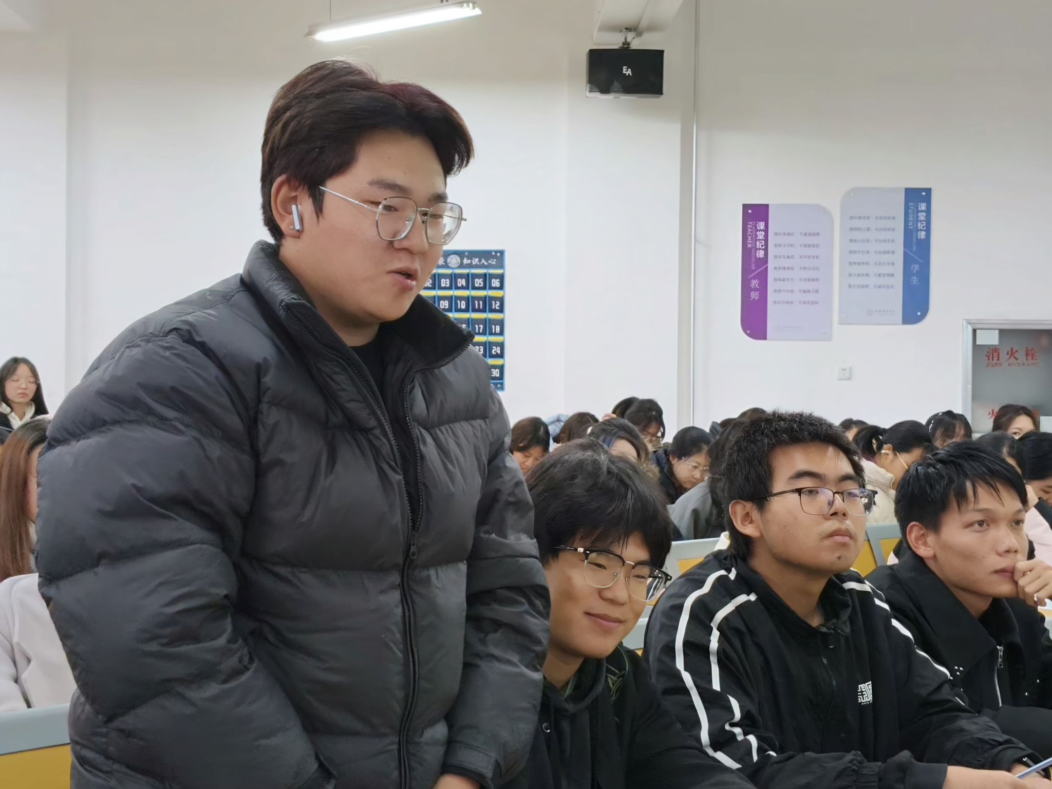 在互动提问环节,李振中老师耐心倾听每一位学子的提问,结合自身丰富经历与当下鲜活时政热点逐一细致解答,并鼓励大家以志愿服务、社会实践为载体,真正做到学思用贯通、知信行统一。思想的火花在交流中不断碰撞,不仅激发了学子们主动担当时代责任的内生动力,更展现出青年一代扎实的知识储备与昂扬向上的精神风貌。