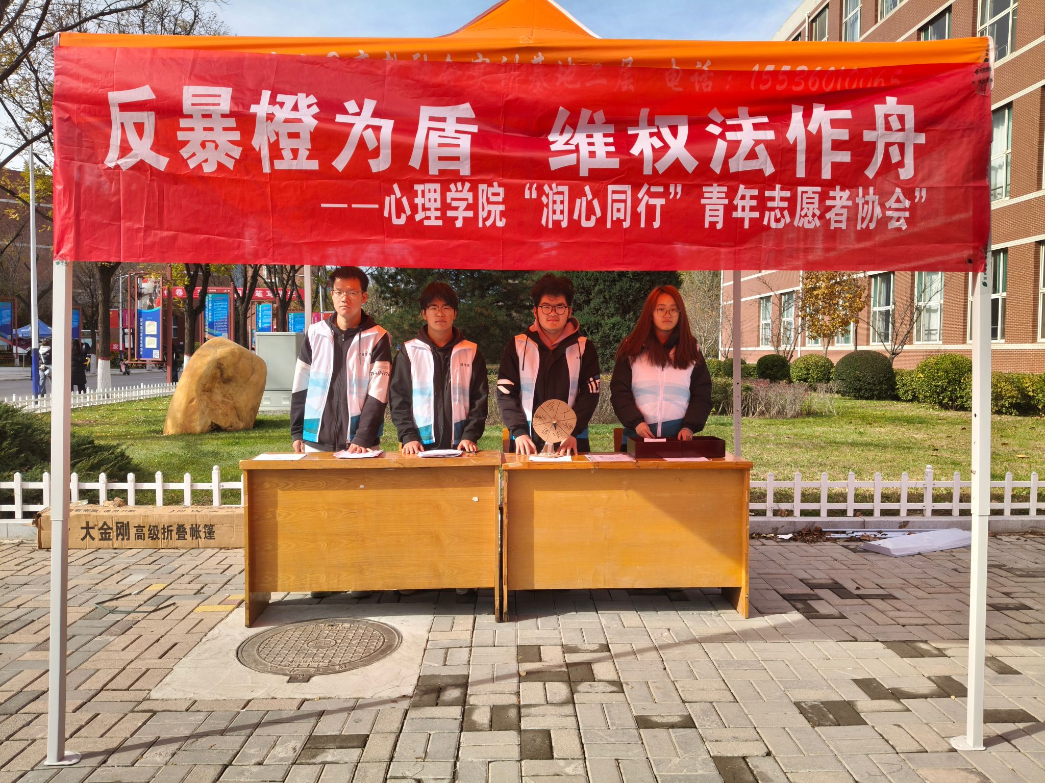 当言语刺痛化作隐形利刃,当冷漠疏离沦为无声伤害,暴力的阴霾或许正悄然蔓延。为打破认知误区,筑牢安全防线,11月8日至9日,公司青年志愿者协会在南区4号与5号教学楼之间,以“反暴橙为盾,维权法作舟”为主题开展公益活动。