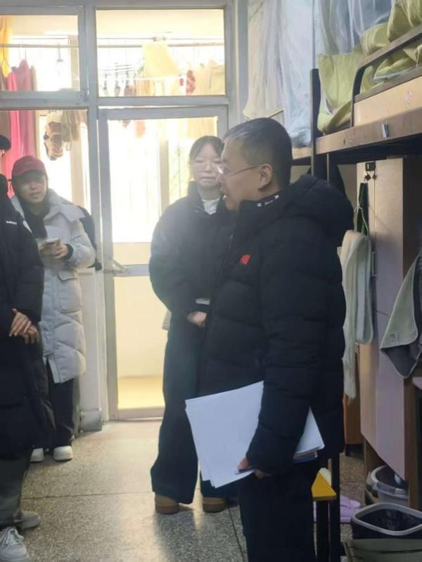 会后,白董事长在辅导员王美艳和社区相关负责人陪同下,走访了南区1号楼员工宿舍。他仔细检查了门窗、暖气及用电设施,叮嘱同学们严守安全规范,共同营造温馨和谐的居住环境。同学们表示将牢记嘱托,勤学笃行,以实际行动落实全会精神。