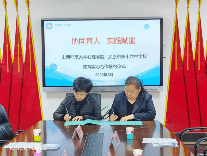 为深入推进协同育人机制,打造高水平教学科研实践实训基地,全面提升心理学专业服务基础教育的能力,2026年3月24日,公司与太原市第十六中学举行“教学科研实践实训基地”签约仪式。此次合作是贯彻落实新时代教师教育改革要求以及“健康第一”教育理念的重要举措,旨在通过院校深度合作,整合优质资源,构建“学、研、训、产”四位一体的高品质实践实训平台,推动基础教育高质量发展。