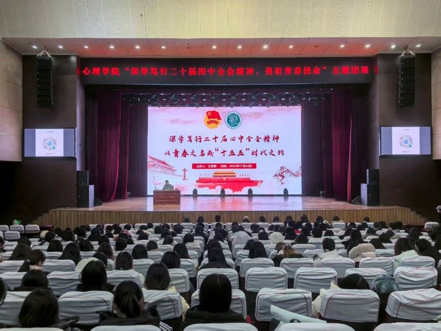 活动伊始,王美艳老师围绕党的二十届四中全会精神核心要义,结合青年成长与时代发展需求,系统解读“十五五”规划战略定位、目标任务及青年使命职责。全会明确要求健全社会心理服务体系和危机干预机制,为心理学专业青年提供广阔实践舞台。王老师强调,心理学专业青年应充分发挥专业优势,将个人理想融入国家大局,在科技创新、乡村振兴、心理健康等领域勇担使命,贡献青春力量。