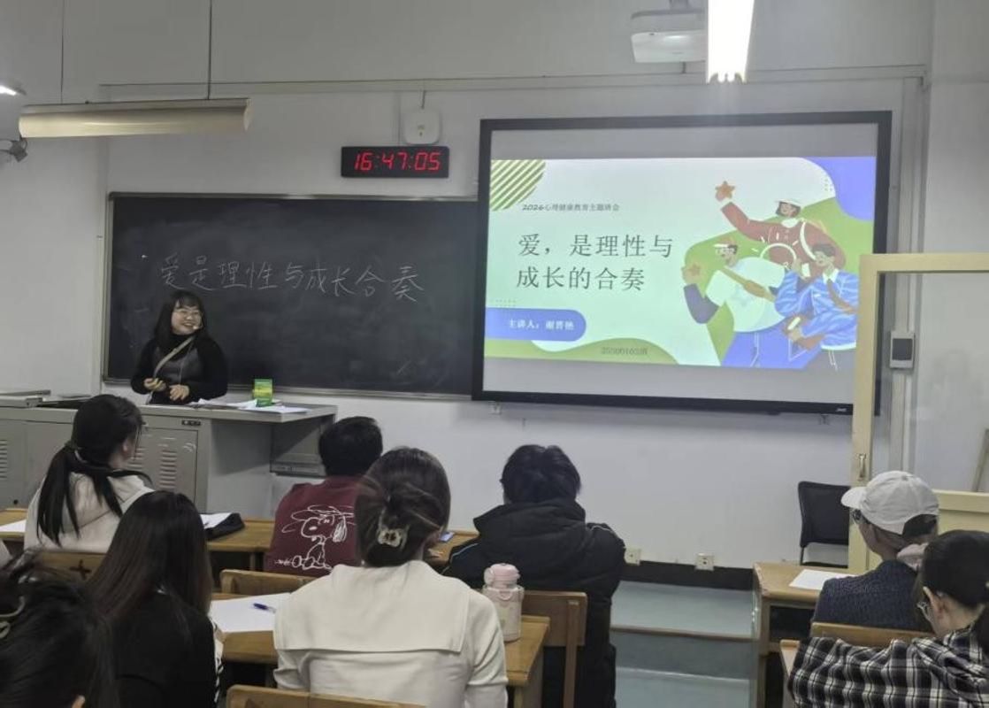 2503班在辅导员谢晋艳老师的带领下,开展“爱,是理性与成长的合奏”主题班会。班会以“爱情的颜色、味道与理解”互动提问开场,通过“爱的选择题”情景讨论,引导员工思考心动与理性、亲密与边界、恋爱与现实规划等问题。谢老师结合斯滕伯格“爱情三角理论”,帮助员工理解健康爱情需兼具激情、亲密与承诺。班会最后设置“写给未来的自己或伴侣”环节,引导员工明确恋爱底线与自我成长方向,并附上学校心理咨询中心联系方式,提醒员工及时寻求专业帮助。